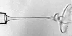 Industrial wet spinning processes produce fibers from polymers and other materials by using tiny needles to eject continuous jets of liquid precursors. The electrically charged liquids ejected from the needles normally exhibit a chaotic “whipping” structure as they enter a secondary liquid that surrounds the microscopic jets.